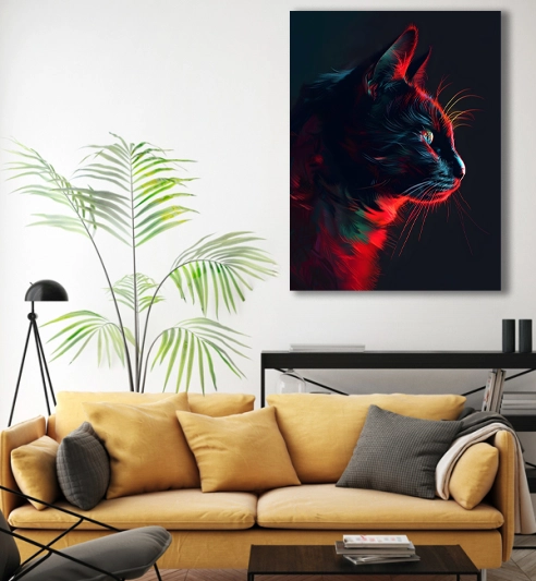 Tableau Chat en Rouge et Noir